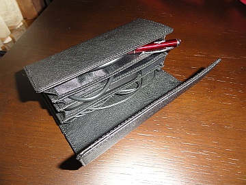 XPeria Tablet Sにはなんとなくワインレッドがおしゃれで似合ってる思って、私はワインレッドにしました。 そこまで主張しない赤です。黒で統一してもいいかもしれませんね。これがあれば、ペンで操作しながら、レーザーポインタでプレゼンもできるという一石二鳥なアイテムです! LEDライト(白色LED)はたぶん暗い所で役立つというくらいであまりまだ使ってませんが。
